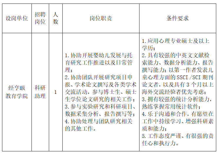 因工作需要,杭州师范大学经亨颐教育学院面向社会公开招聘非事业编制科研助理1名。
